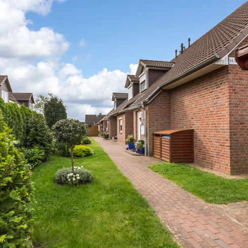 Die Wohnanlage, in dem sich diese Traumwohnung auf zwei Ebenen befindet, wurde erst im Jahre 2004 in konventioneller Massivbauweise zuzüglich Klinkerfassade, im Stil einer großzügigen Reihenhausanlage, errichtet und befindet sich in einem sehr gepflegten Zustand. Sie betreten diese Immobilie über eine eigene Haustür. Die Wohnung, mit ca. 101 m² Wohnfläche, gliedert sich in der ersten Ebene in den großzügigen und hellen Flur, ein gut geschnittenes Zimmer, die Küche mit Frühstücksmöglichkeit im Erker sowie voll ausgestatteter und moderner Einbauküche, den praktischen Hauswirtschaftsraum und den großzügig geschnittenen Wohn-/ Essbereich, mit hochwertigem Kaminofen und Zugang zur zweiten Wohnebene. Große Fensterelemente bieten einen herrlichen Ausblick. Der einladende Balkon ist ebenfalls vom Wohn-/ Essbereich aus begehbar. Diese Ebene ist modern gefliest und mit einer Fußbodenerwärmung versehen, bis auf den Wohn-/ Essbereich, welcher mit hochwertigem Parkettboden ausgestattet ist. Auf der zweiten Ebene befinden sich das große Dachstudio, ebenfalls mit hochwertigem Parkettboden sowie mit einem großen verglasten Giebel ausgestattet, der angrenzende Ankleidebereich und das moderne, helle Duschbad. Zur Immobilie gehört darüber hinaus ein eigener Abstell- bzw. Lager- und Geräteraum sowie ein eigener Carport- Stellplatz direkt vor dem Gebäude. Für Gemeinschaftsaufgaben wird eine monatliche Rücklage von nur ca. EUR 97,- eingezahlt. Diese Immobilie eignet sich hervorragend für Singles, Paare oder kleine Familien, die modern in der gesuchten Metropolregion Hamburgs leben möchten. Auch ist diese Immobilie für Kapitalanleger sehr interessant.