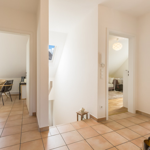 3 Wohn-/Schlafräume inkl. ausgebautem Dachstudio, Wohnküche, Wannenbad mit Fußbodenerwärmung, Duschbad, verglaster Giebel, gelagerter Kaminofen, Flur, eigene Haustür, Heizungs-/Hauswirtschaftsraum, Gas-Etagenheizung, Balkon, Parkettboden, Fußbodenerwärmung, isolierverglaste Kunststofffenster mit innenliegenden Sprossen, Dachgauben, Abstell- bzw. Lager- und Geräteraum, Carport-Stellplatz, EUR 97,- Gemeinschaftskosten, sehr gepflegt