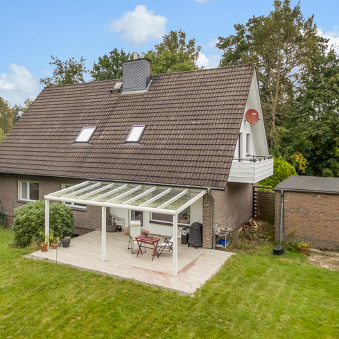 Beschreibung Diese Immobilie wurde ursprünglich im Jahre 1984 in ökologischer Holzständerbauweise mit massiver Klinkerfassade zuzüglich wohnlich ausgebautem Vollkeller fertiggestellt und in den letzten Jahren aufwendig und unter Verwendung hochwertiger Materialien energetisch sowie optisch saniert. Unter anderem wurde eine neue Heizungsanlage sowie rundum neue Fenster, inklusive Außenrollläden, eingebaut. Die Strom- und Wasserleitungen wurden erneuert, hochwertige Einbauküchen montiert, erstklassige neue Kaminöfen eingebaut und die Bäder saniert. Weiterhin wurden die Außenanlagen, inklusive großer überdachter Terrasse und überdachtem Eingangsbereich, aufwendig neu erstellt sowie die Fassade saniert und das gesamte Haus neu verfugt und mit neuen Wand und Bodenbelägen versehen. Den Mittelpunkt bildet die moderne, neue und hochwertige offene Küche, die, optisch durch Fachwerkelemente getrennt, über den Wohnbereich mit dem Essbereich verbunden ist. Der neue und moderne Kaminofen sorgt hier für wohlige Wärme. Die großen Fensterelemente führen nach draußen in den traumhaft angelegten Garten. Im Erdgeschoss sind die Abstellräume, das Vollbad, der einladende Eingangsbereich mit Garderobe und Zugang zum Vollkeller, der Flur, die Schlafzimmer sowie der Wohn-/Essbereich hochwertig gefliest. Das Dachgeschoss ist, wie auch das Erdgeschoss, vollflächig mit einer Fußbodenheizung versehen. Es verfügt über 4 große Zimmer und ein modernes Vollbad sowie ebenfalls über einen neuen Kaminofen und eine neue Einbauküche. Der große Balkon bietet die Zugangsmöglichkeit, das Garagendach als riesige Dachterrasse zu nutzen. Im gesamten Dachgeschoss ist darüber hinaus moderner Vinylboden verlegt. Der Dachboden bietet zudem noch großzügige Abstellmöglichkeiten. Der wohnliche Vollkeller, mit ausreichend Deckenhöhe und Tageslichtfenstern, verfügt über insgesamt 6 Kellerräume. Ein Raum wird derzeit als Büro, ein weiterer Raum als Gästebereich, genutzt. In einem weiteren Raum wurde ein neues Duschbad realisiert. Zum Angebot gehören weiterhin eine große massive Doppelgarage, weitere Stellplätze am Haus und 2 Nebengebäude. Ob viel Platz für die Familie, zwei getrennte Wohneinheiten oder ebenerdiges Wohnen und Vermietung: Die Architektur der Immobilie sowie die getrennten Verbrauchszähler zwischen Erdgeschoss und Dachgeschoss, bieten vielseitige Möglichkeiten!