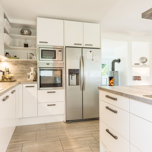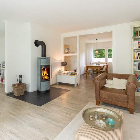 Erdgeschoss: neue offene Wohnküche, Wohn-/ Esszimmer, 2 Schlafzimmer, Diele, Vollbad, Abstellraum mit Vorbereitung für ein Gäste-WC, neuer Kaminofen, Abstellkammer, überdachte Terrasse, Fachwerkelemente